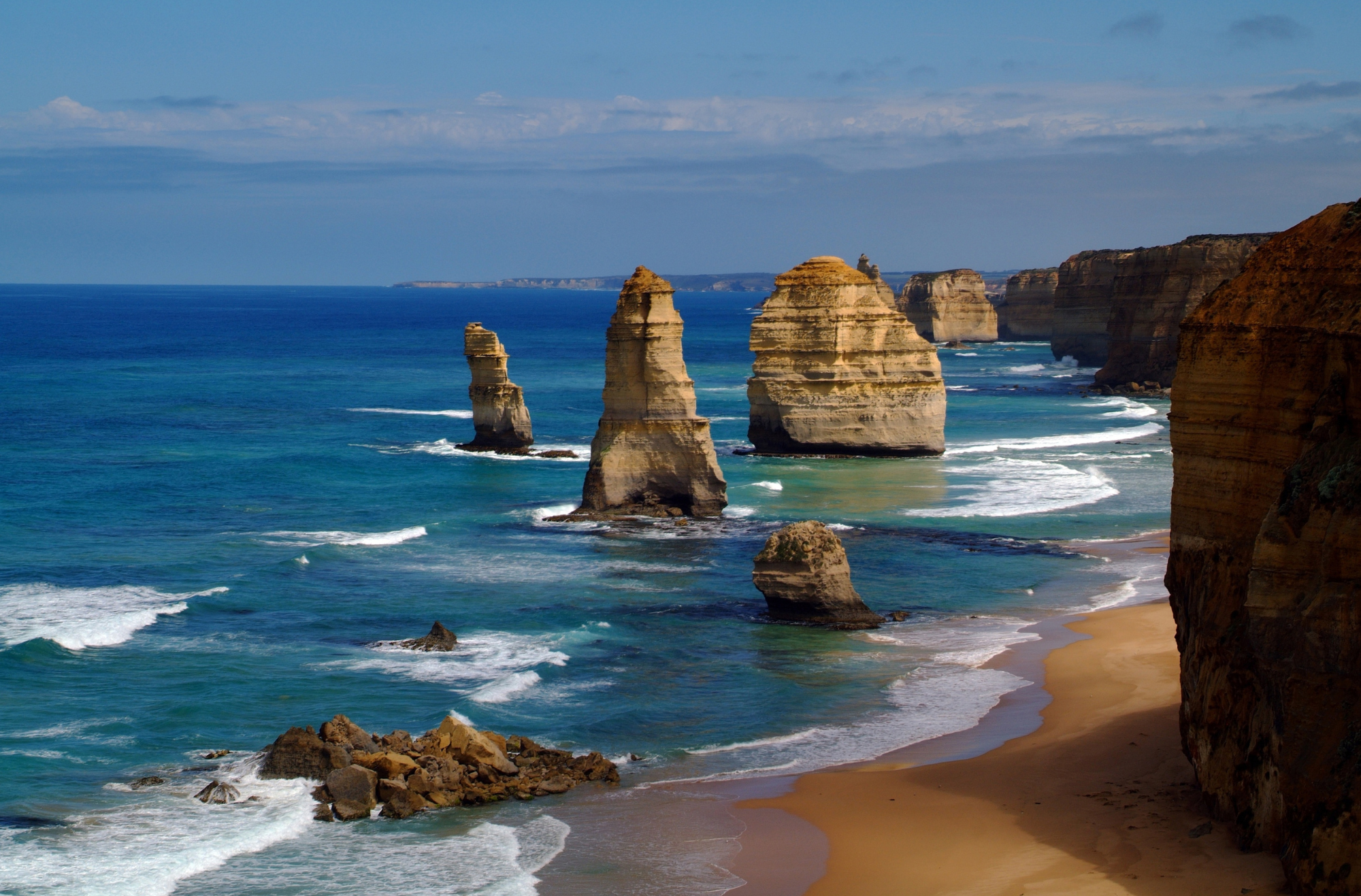 Lungo il percorso avrete l’occasione di ammirare Torquay, Lorne e Apollo Bay, caratteristiche cittadine di mare e veri paradisi per gli amanti del surf. Dalla strada si scorgono imponenti dirupi di pietra calcarea, le infinite distese di spiagge bianche e le stupende foreste popolate da canguri e koala, tra cui il bellissimo Otway N.P. Passeggiando su apposite passerelle, potrete godervi lo scenario offerto dai Dodici Apostoli, faraglioni calcarei che si stagliano nell’oceano. Sosta al Loch Ard Gorge, al Port Campbell N.P. Rientro in città in tarda serata.