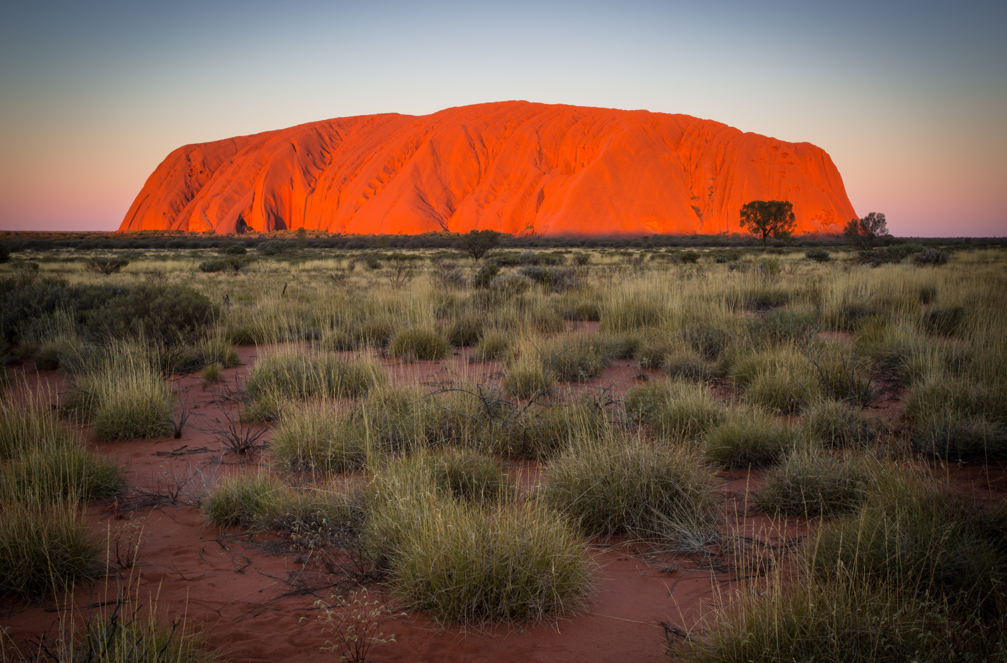 Prima del sorgere del sole trasferimento (circa 30 km) per i Monti Olgas o Kata Tjuta in lingua aborigena. Da un punto di osservazione privilegiato potrete assistere ad uno dei più spettacolari giochi di luci naturali: i raggi del sole irradiano la roccia di arenaria di cui sono fatte le 36 cupole rocciose, creando uno effetto di luce dal colore rosso "fuoco". A seguire vi incamminerete lungo la Walpa Gorge, una stretta fessura che si incunea tra le grandi pareti di due enormi rocce. La loro forma sferica è dovuta all'erosione degli agenti atmosferici, venti che soffiano impetuosi e nell'arco di 500 milioni d'anni, l'hanno rese come oggi appaiono. Al termine rientro in hotel. Per meglio apprezzare questa escursione, non dimenticate di portarvi al seguito degli indumenti caldi per le ore più fredde, senza dimenticare di indossare delle scarpe comode per il semplice trekking. Colazione inclusa. Tempo a disposizione per attività facoltative sino al primo pomeriggio. Pomeriggio dedicato alla scoperta di Uluru, il monolito più famoso del mondo. Si intraprende una piacevole passeggiata lungo la "Mala Walk" che scorre lungo il perimetro del grande monolito. Seguendo il sentiero la vostra guida vi porterà a vedere delle arcaiche pitture rupestri e la pozza sacra di "Multitjulu Wathehole". Per gli Anangu (la comunità aborigena locale) questi luoghi hanno un grande significato spirituale e culturale, perché queste terre rappresentano la natura stessa del “dream time”, l’era che precede la memoria umana, popolata da esseri ancestrali che oggi rivivono nella natura e nella terra. Tra la narrazione di mitologiche leggende aborigene, e la scoperta di una flora e fauna unica nel suo genere, ritornerete a bordo del pulmino per spostarvi in attesa di assistere ad uno dei più spettacolari giochi di luci naturali. Dal vostro punto di osservazione privilegiato assisterete al tramonto sul grande monolito, mentre sorseggerete un bicchiere di vino o un succo d'arancia. Al termine rientro in hotel. Per meglio apprezzare questa escursione, ricordatevi di portare al seguito degli abiti caldi per le ore più fredde; senza dimenticare di indossare delle scarpe comode per il semplice trekking.