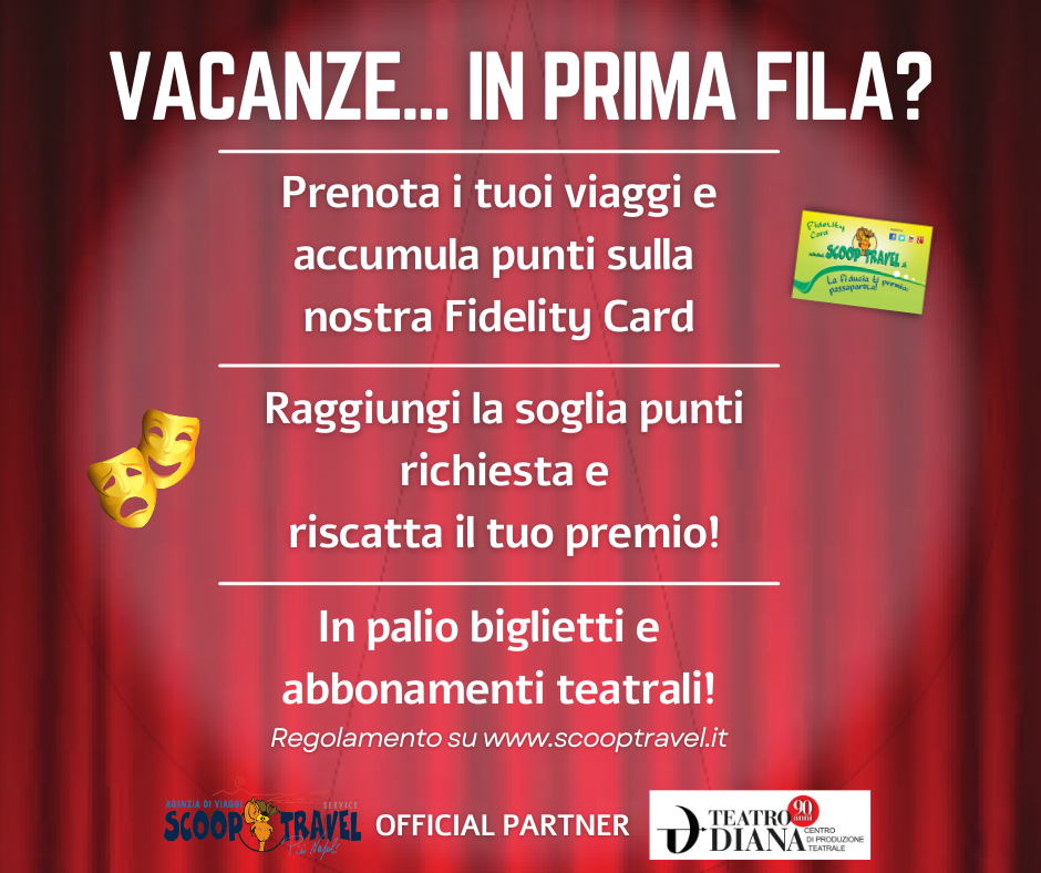 P.S. Se al raggiungimento della soglia punti corrispondente avrai già acquistato un abbonamento al Teatro Diana, noi te lo rimborseremo!